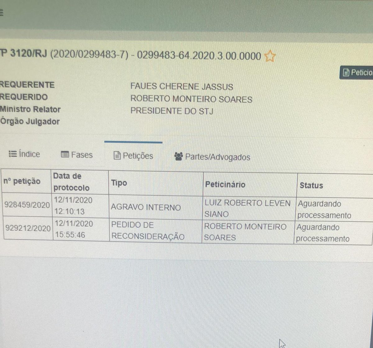 Assim como Leven, o presidente do Conselho Deliberativo, Roberto Monteiro, entrou com um pedido de reconsideração da liminar do STJ que suspendeu os efeitos da eleição do último sábado (7), como informado pelo amigo @daviddcn