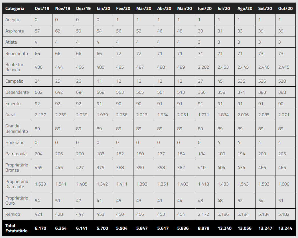 Faça o download da listagem de sócios ativos em 31/10/2020
