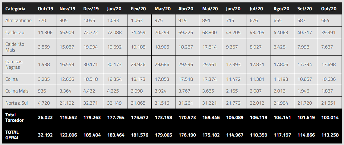 Vasco fechou outubro com 113.258 sócios, sendo 100.014 sócios-torcedores; veja números e lista