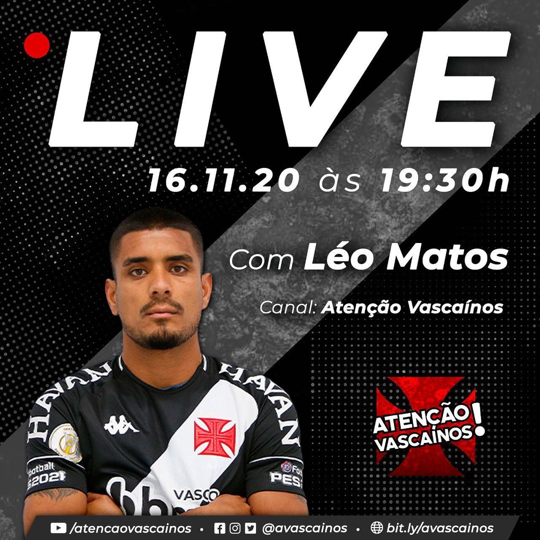 Léo Matos participa de live do canal Atenção Vascaínos nesta 2ª-feira às 19h30