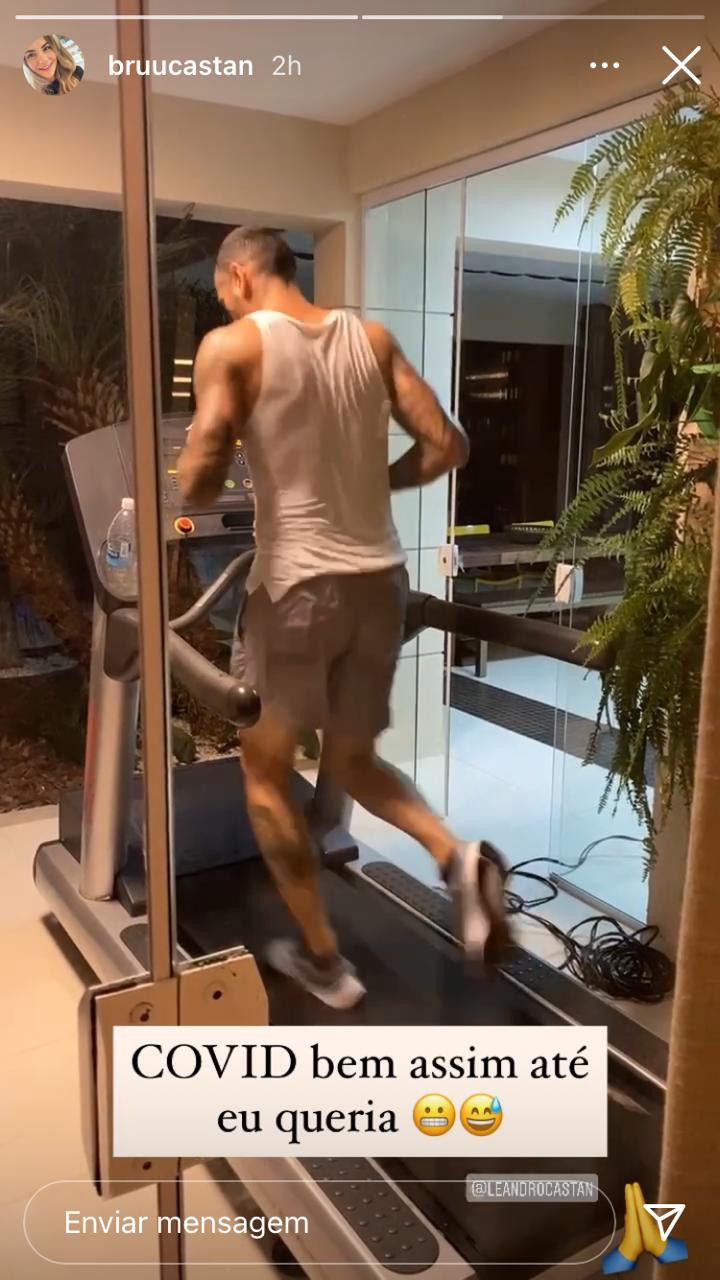 O zagueiro do Vasco Leandro Castán testou positivo para a covid-19 antes da partida contra o Sport no último sábado (14). Cumprindo o isolamento social, o jogador do Vasco posta em suas redes sociais sua rotina de exercícios em casa. Na noite desta segunda-feira (16), Bruna Castán, mulher de Leandro, fez uma postagem no Instagram onde o capitão vascaíno aparece se exercitando, seguido da frase: "Covid bem assim até eu queria."
