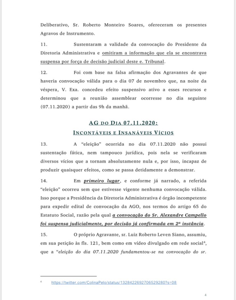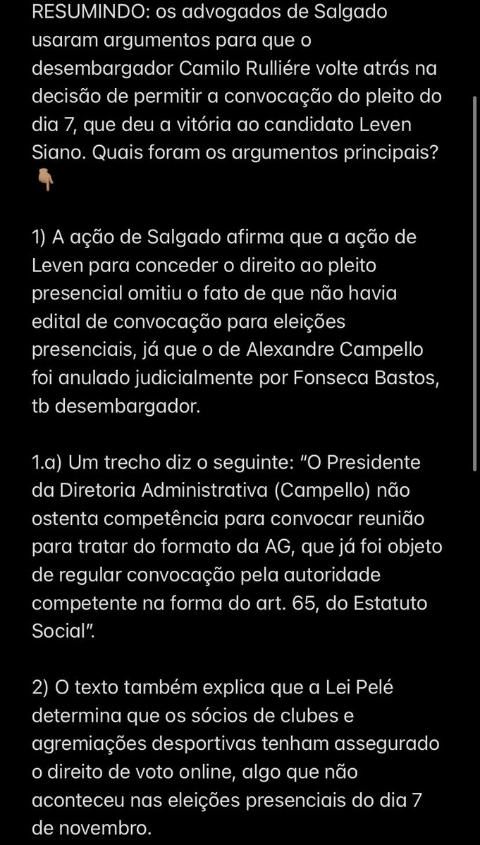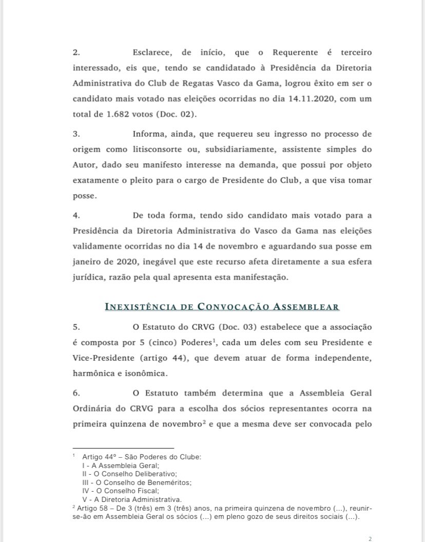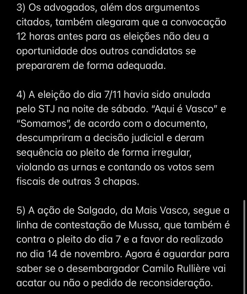 ⚠️ Tive acesso à íntegra da ação que Jorge Salgado, da Mais Vasco, ingressou na justiça pedindo ao desembargador Camillo Rullière que reconsidera sua decisão após o ele conceder a liminar que deu o direito das eleições do Vasco acontecerem no dia 7/11, de forma presencial: