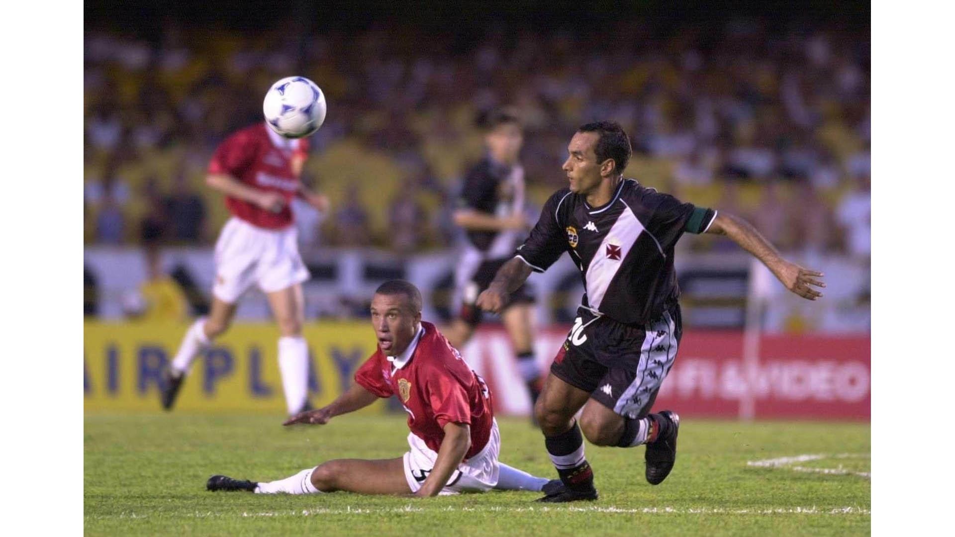Depois da expulsão de David Beckham e o empate em 1 a 1 com os mexicanos na estreia, com gol de Yorke, o Vasco de Romário e Edmundo foi o próximo adversário. O Baixinho aproveitou duas falhas grosseiras de Gary Neville e colocou os cariocas em boa vantagem no Maracanã. Ainda antes do intervalo, o Animal recebeu passe de costas para o gol na entrada da área e, após um giro espetacular sobre o zagueiro Mikael Silvestre, tocou na saída de Mark Bonisch e fez uma obra-prima. Nicky Butt descontou no fim, e o placar ficou em 3 a 1.