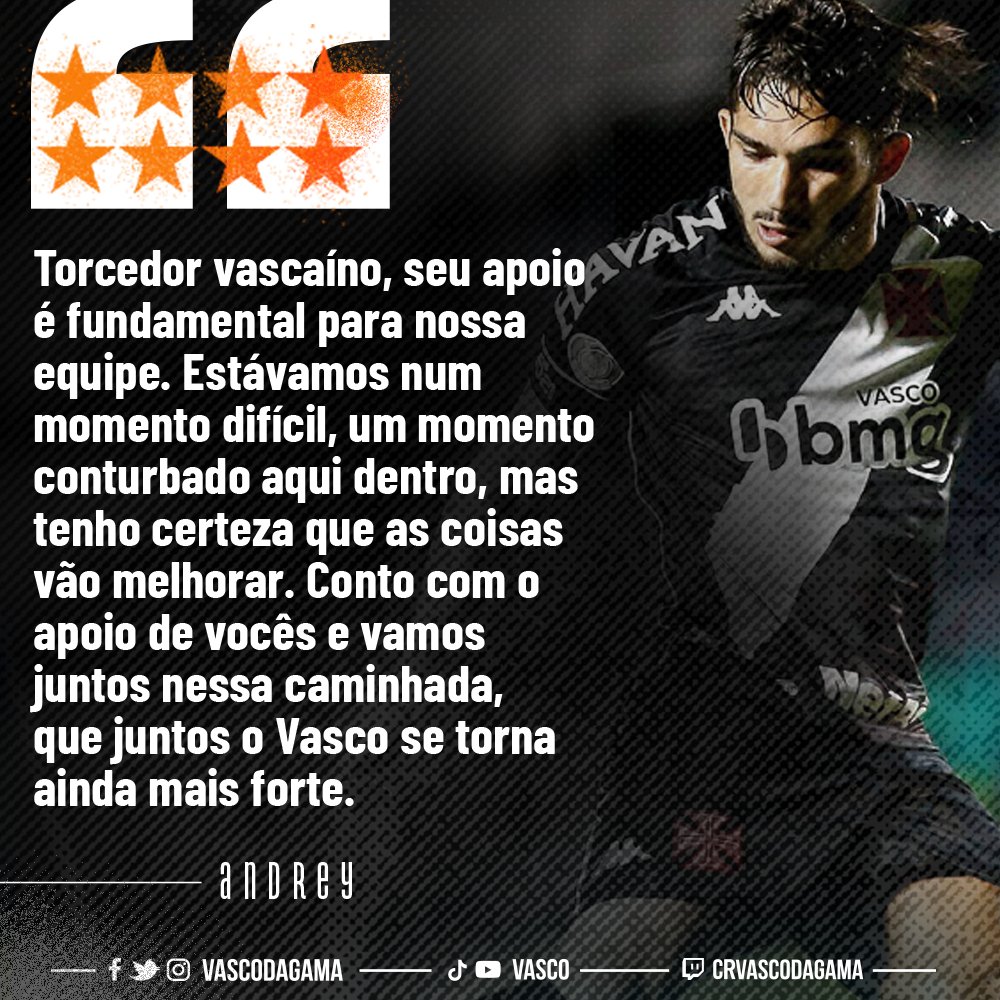 Andrey: 'Torcedor vascaíno, seu apoio é fundamental para nossa equipe'
