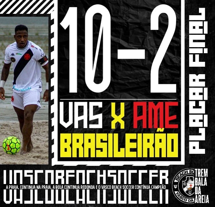 A chuva que caiu no Parque Olímpico da Barra no final da tarde não esfriou a equipe do Vasco da Gama no confronto diante do América-RN. Embalados pelo craque Mauricinho, autor de 3 gols, o Trem Bala da Areia derrotou a equipe potiguar por 10 a 2, confirmando seu favoritismo no grupo por uma das vagas na semifinal da Etapa Final do Campeonato Brasileiro de Beach Soccer 2020. A definição de quem será o primeiro do Grupo C sairá na rodada desta sexta-feira, 20/11, quando o cruzmaltino encara Anchieta, às 16h15, no encerramento da fase classificatória.