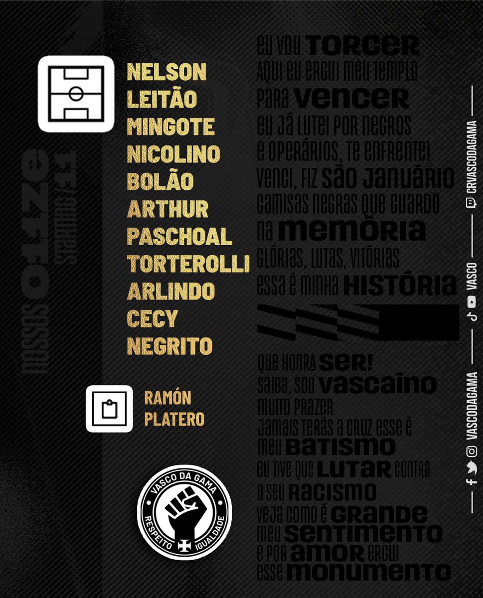 Via Twitter, Vasco escala o time dos Camisas Negras de 1923