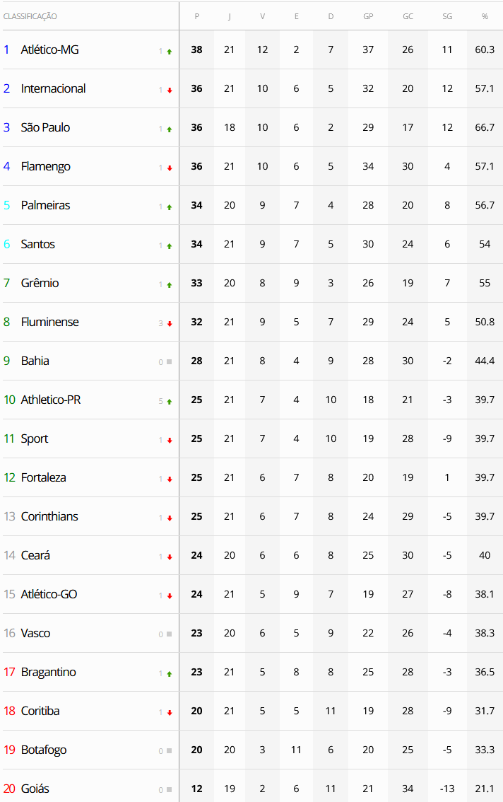 Após o empate por 0 a 0 com o Fortaleza, em jogo atrasado da 16ª rodada do Brasileiro, o Vasco está na 16ª posição, ou seja, na última colocação antes do Z4. O Gigante da Colina ainda tem um jogo a menos do que a maioria dos seus adversários, válido pela 1ª rodada, contra o Palmeiras, fora de casa.