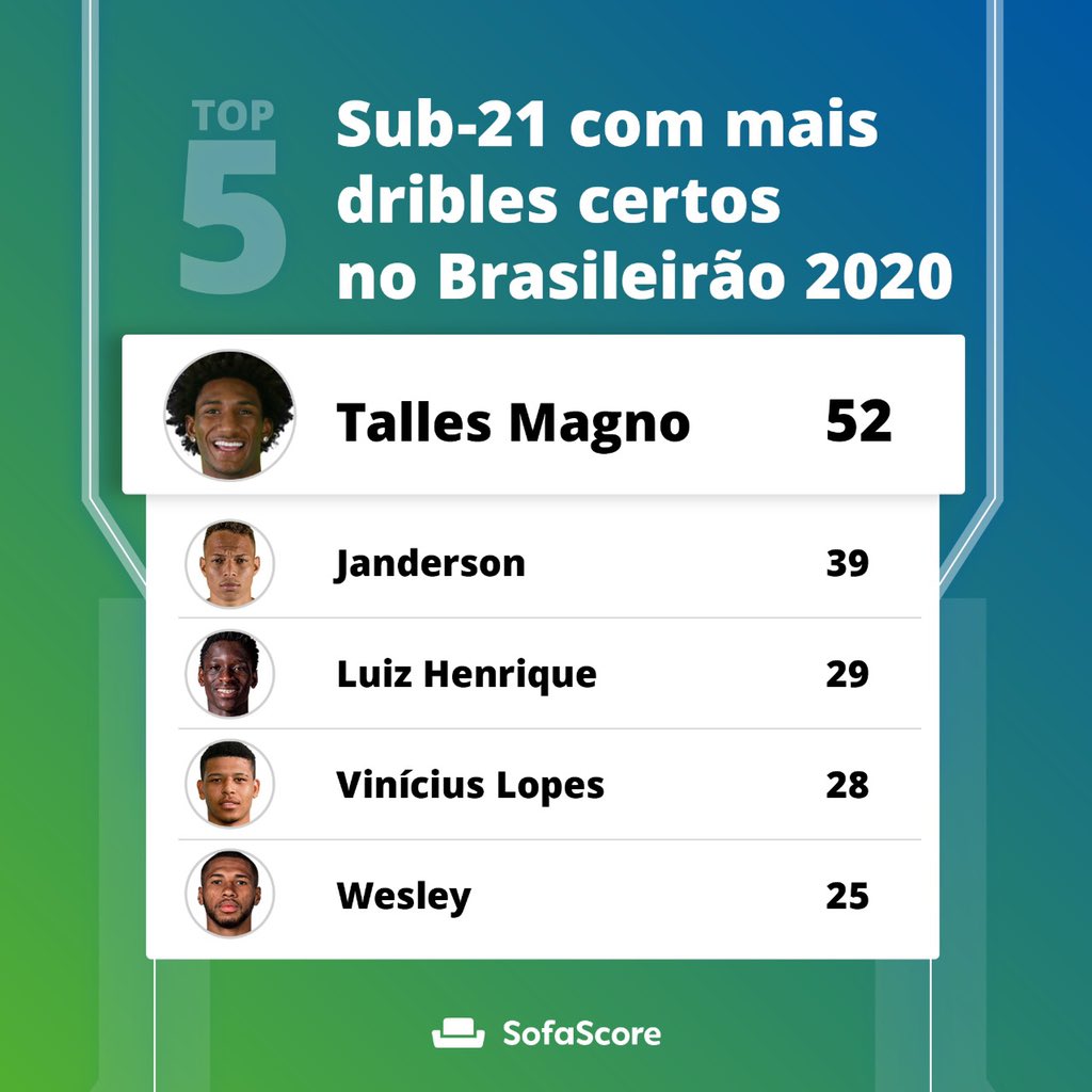 ? Jogadores sub-21 com mais dribles certos no @Brasileirao: