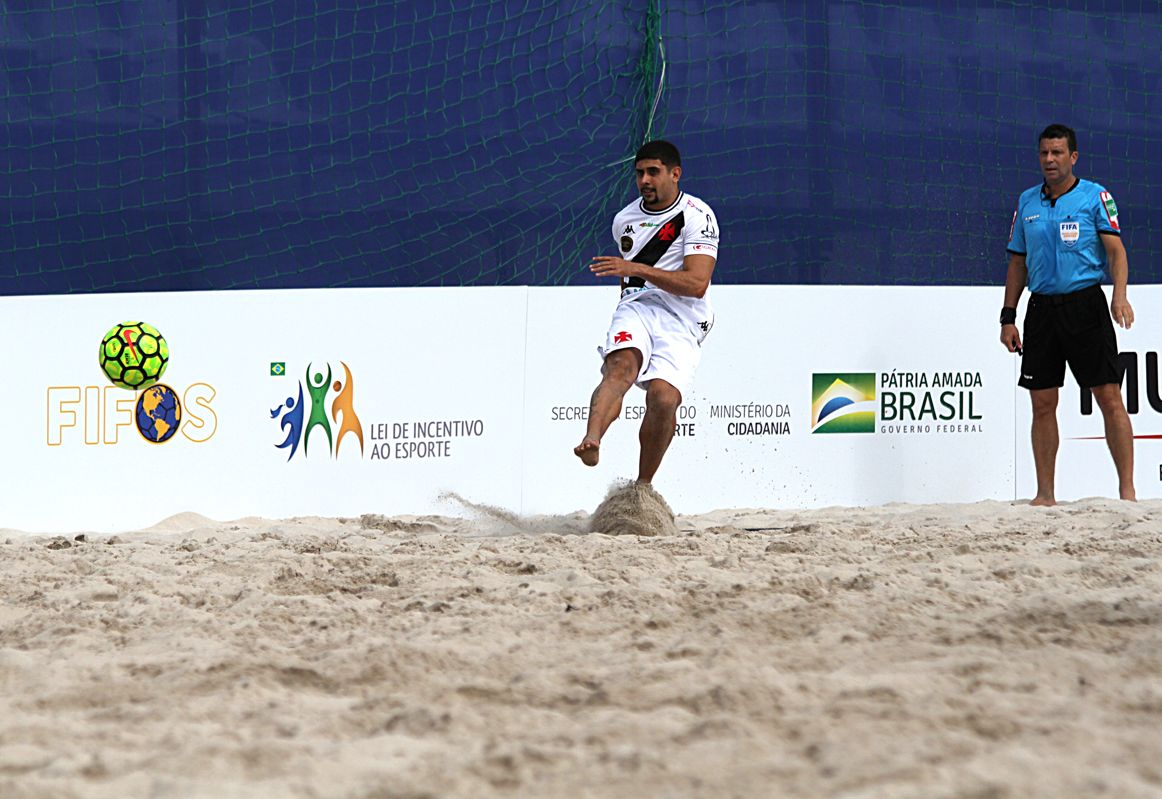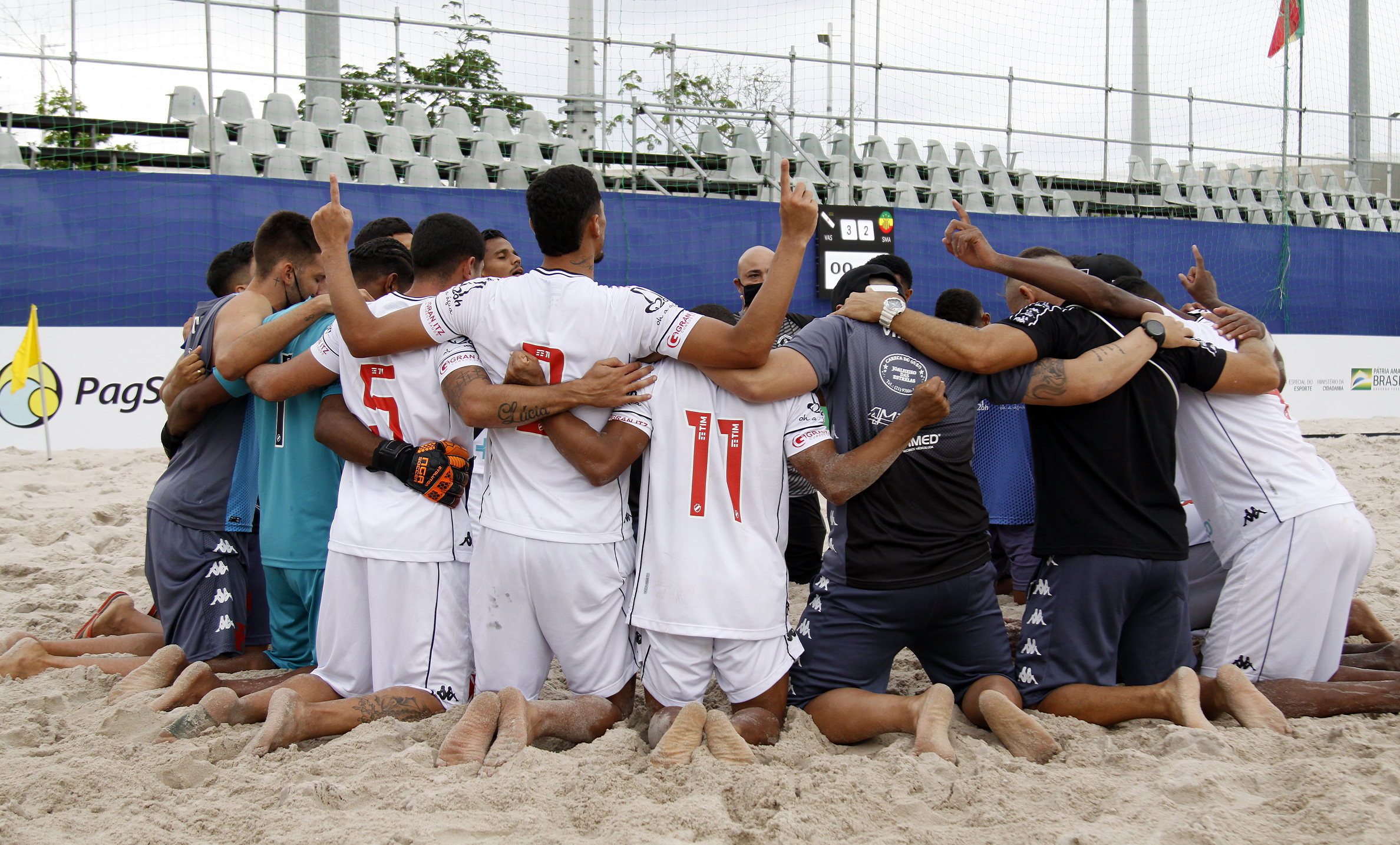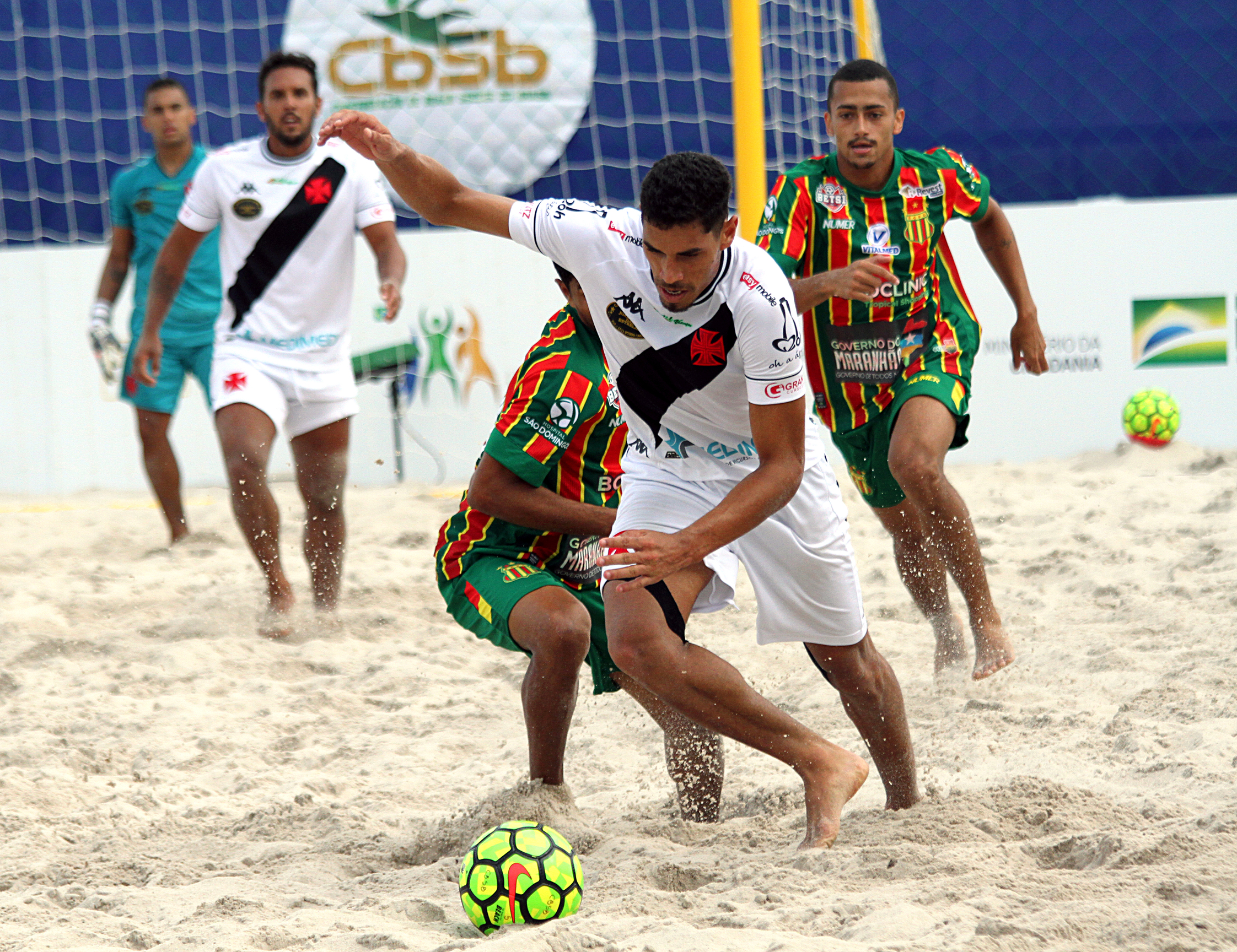 Foi dramático, suado e sofrido. Depois de sair perdendo e empatar no tempo normal da final do Brasileiro de futebol de areia, o Vasco abriu o placar na prorrogação ficando muito perto do título. Só que o Sampaio Corrêa tinha o craque da seleção Datinha, que igualou o marcador a 15 segundos do fim, forçando a disputa de pênaltis. Nas penalidades, porém, brilhou a estrela do goleiro Rafa Padilha, que já havia sido herói na semifinal contra o Flamengo. Com uma vitória por 3 a 2 nos pênaltis, após 2 a 2 no placar agregado, o Vasco sagrou-se tricampeão brasileiro neste domingo, no Parque Olímpico da Barra, no Rio de Janeiro.