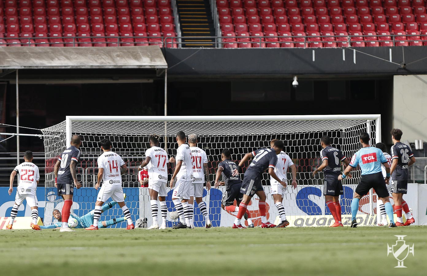 Aos 18 minutos, o Vasco saiu na frente do placar. Após belo lançamento de Gustavo Torres, Cano deu belo passe e Pikachu recebeu sozinho em condição legal, avançou em direção ao gol do São Paulo e finalizou sem chances de defesa para o goleiro Tiago Volpi.