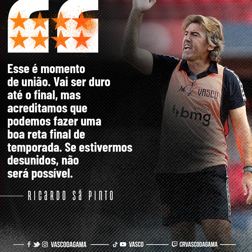 Vasco destaca frase de Ricardo Sá Pinto: 'Esse é momento de união'