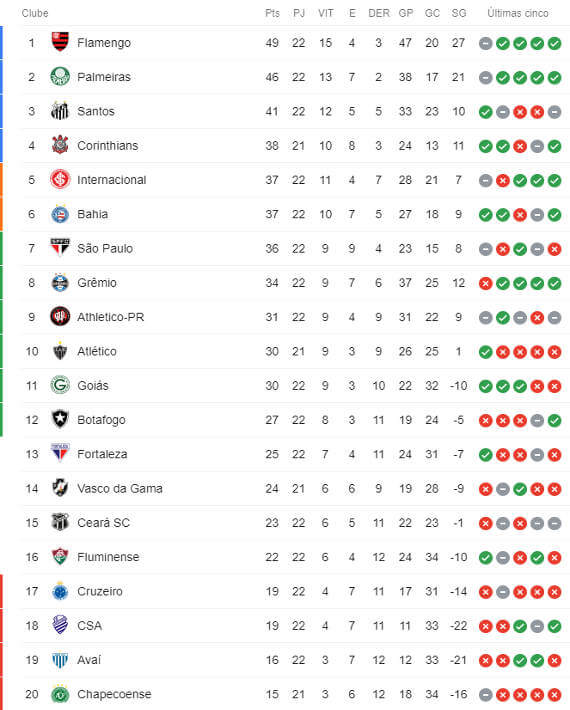 Neste ano, a pontuação do Z4 já subiu consideravelmente. Vale destacar que em 2019, com apenas 37 pontos, os times já se livravam do rebaixamento.