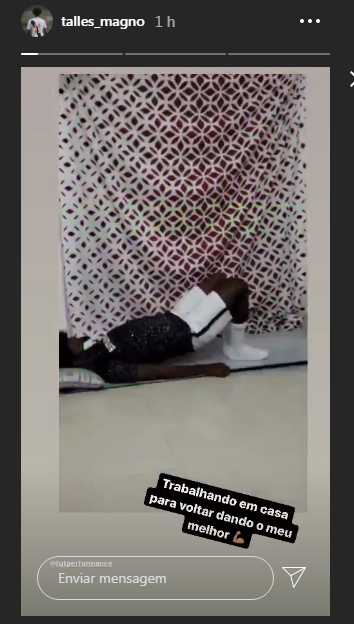 Diagnosticado com Covid-19, Talles Magno treina em casa; veja foto