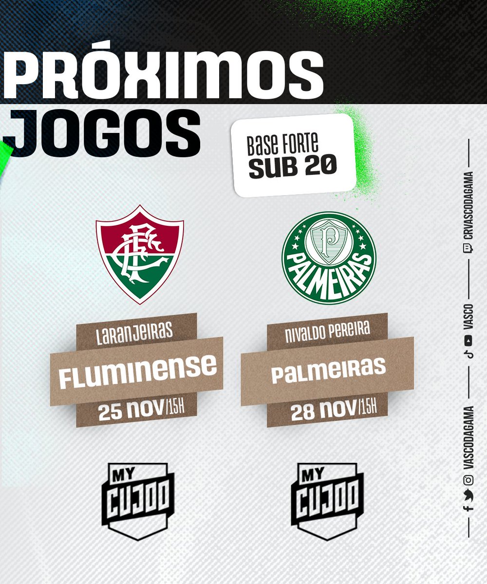 25/11/20 - Juniores: Pelo Brasileiro Sub-20, Vasco enfrenta o Fluminense nesta 4ª-feira às 15h nas Laranjeiras com MyCujoo