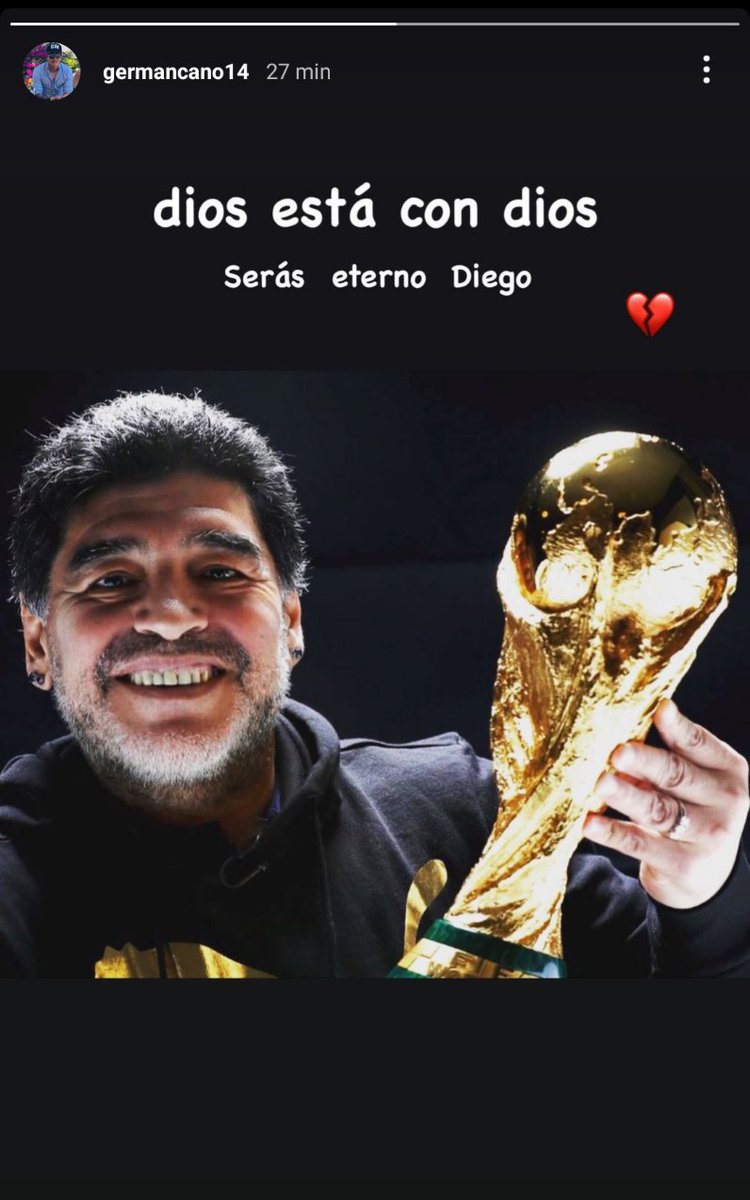 Cano usou seu Instagram para demonstrar luto a morte de Diego Maradona.