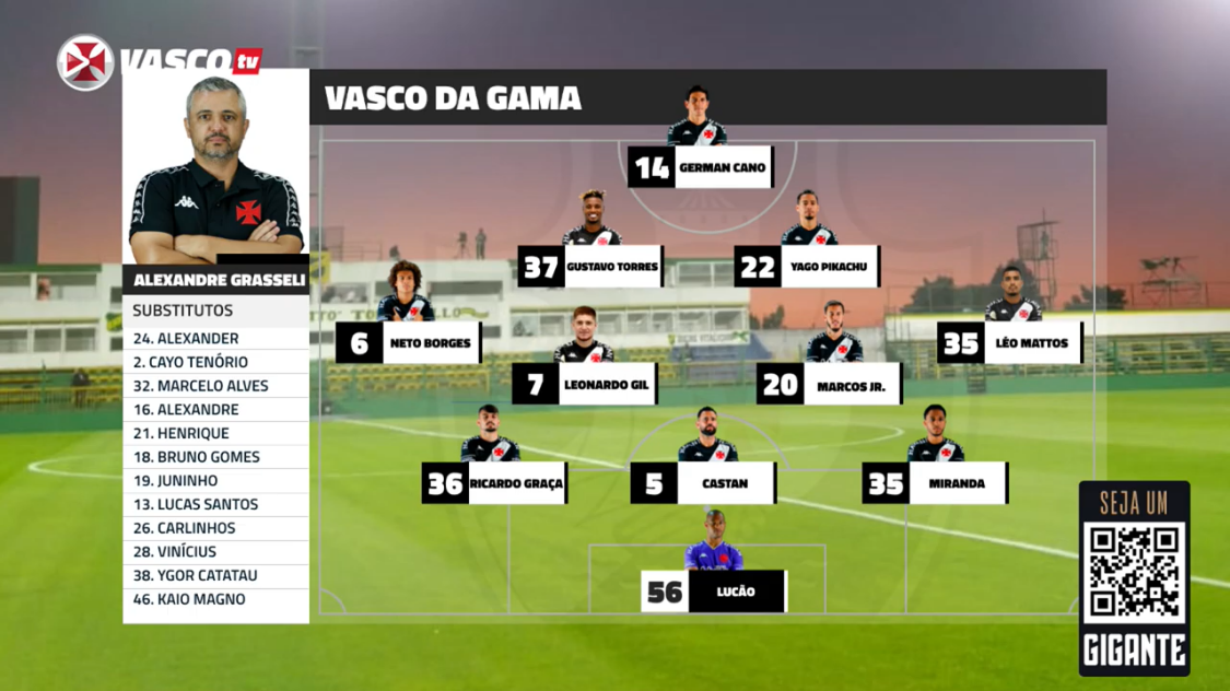 22/11/20 - VascoTV apresenta disposição tática do time titular deste domingo; confira