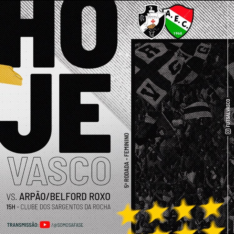 Futsal Feminino: Vasco enfrenta o Arpão/Belford Roxo neste sábado às 15h com Youtube