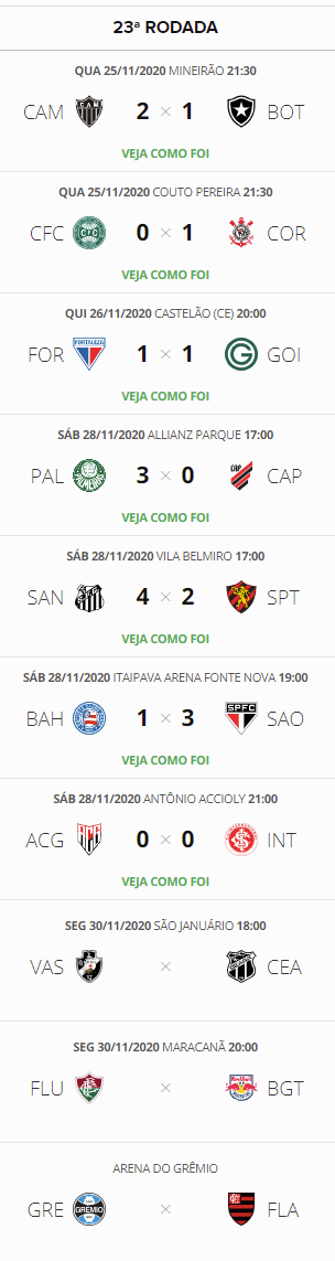 Os jogos de sábado da 23ª rodada do Campeonato Brasileiro não influíram na colocação do Vasco, que está em 17º lugar na classificação. O Gigante da Colina enfrenta o Ceará nesta segunda-feira, às 18h, em São Januário.