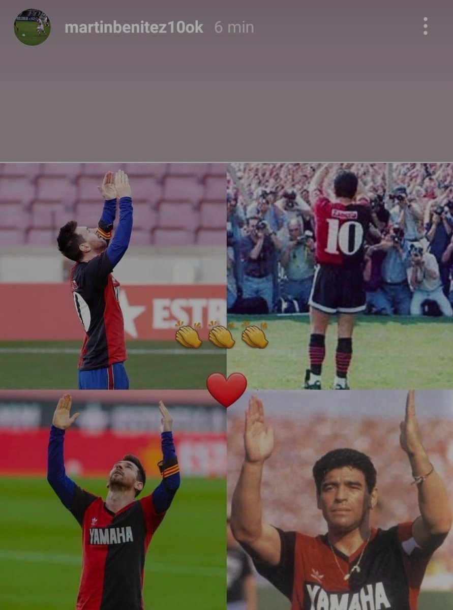 Através de seu Instagram, Martin Benitez parabenizou Lionel Messi pela homenagem feita ao Maradona.