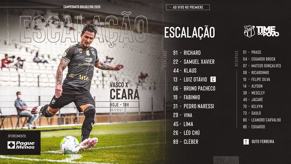 Vozão escalado para a partida contra o Vasco. PRA CIMA, CEARÁ! ??