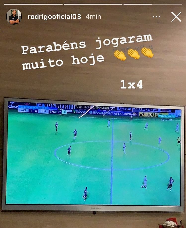 No Instagram, ex-zagueiro Rodrigo ironiza atuação do Vasco na partida contra o Ceará: 'Parabéns jogaram muito hoje'