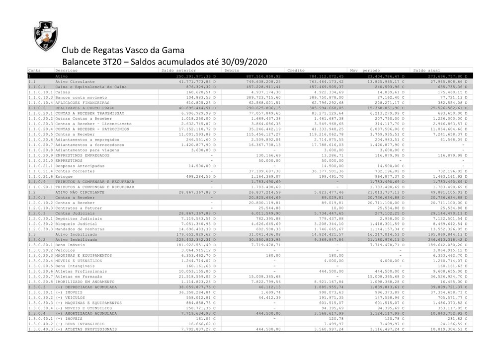 Em fim de mandato - com o Vasco a cada dia mais ameaçado e na luta contra o quarto rebaixamento em sua história -, o presidente Alexandre Campello apresentou na última semana o balancete do terceiro trimestre do clube. No ano de pandemia, sem público e arrecadações com bilheteria e venda de jogos (orçados inicialmente em R$ 20 milhões), o resultado parcial tem R$ 33,9 milhões em valores de jogadores. Em 2019, foram R$ 7 milhões registrados em vendas.
