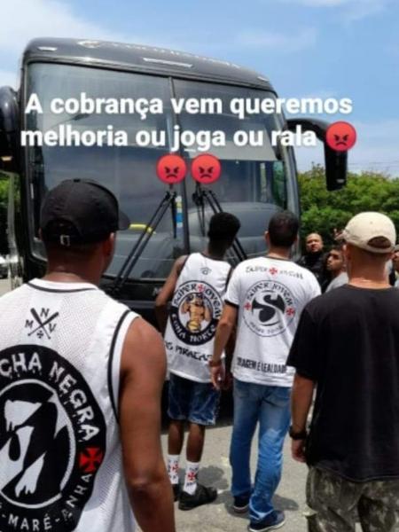 Um grupo de cerca de 30 integrantes de organizadas realiza um protesto na porta do recém-inaugurado centro de treinamento do Vasco, em Jacarepaguá, na Zona Oeste do Rio de Janeiro.