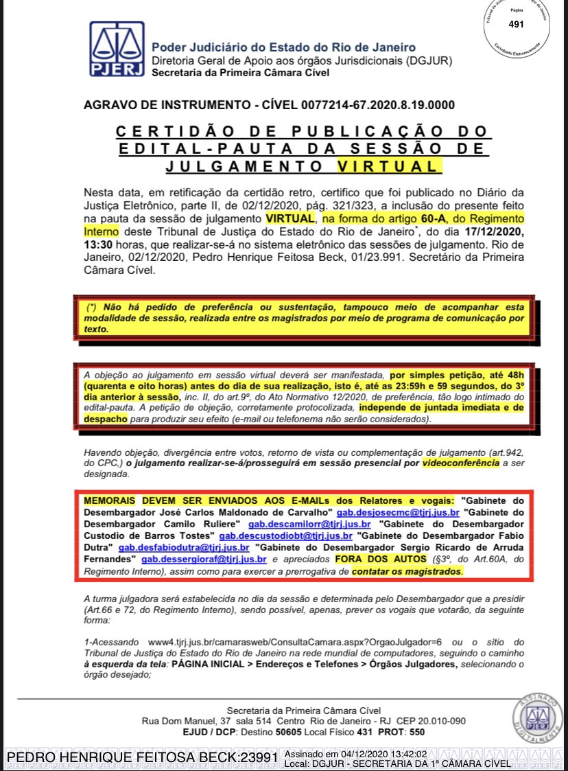 O Diário Oficial consta que o julgamento continua sendo dia 17/12. Inclusive um documento assinado pelo Secretário da 1° Câmara Cível, às 13h42 desta sexta, confirma. O sistema, que consta dia 10/02, não é oficial. Seguimos apurando, mas, no momento, é isso. Com @leonardopeixer