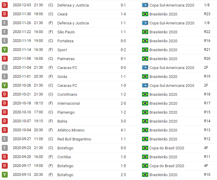 Das últimas 20 partidas, Vasco venceu 3, empatou 7 e perdeu 10