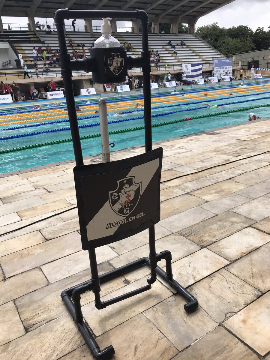 Totens de álcool em gel foram espalhados pelo parque aquático do Vasco da Gama para os envolvidos na competição.