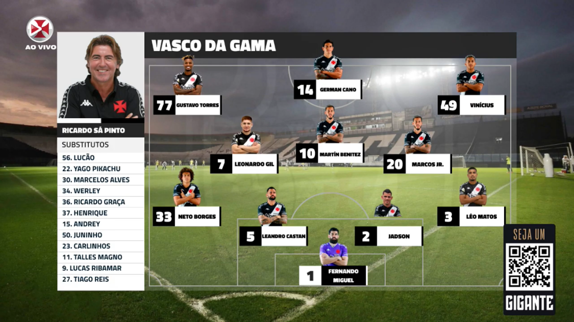 06/12/20 - VascoTV apresenta disposição tática do time titular deste domingo; confira