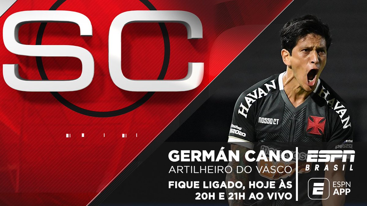 O SportsCenter recebe o atacante Germán Cano, artilheiro do Vasco. Fique ligado! Hoje, às 20h e 21h, ao vivo na ESPN Brasil e no ESPN App ?