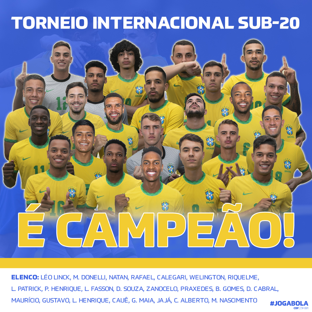 Na manhã desta sexta-feira (18), a Seleção Brasileira Sub-20 conquistou o título do Torneio Internacional da categoria, disputado na Granja Comary, em Teresópolis (RJ). Com gol de Cauê, a equipe comandada por André Jardine empatou em 1 a 1 com o Chile e ficou com a primeira posição do quadrangular, com seis pontos e maior saldo de gols em relação aos adversários.