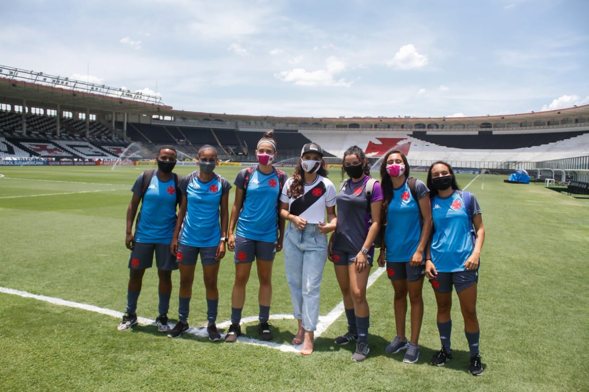 Feminino: Ex-BBB Gizelly Bicalho tirou foto com jogadoras do Vasco em São Januário