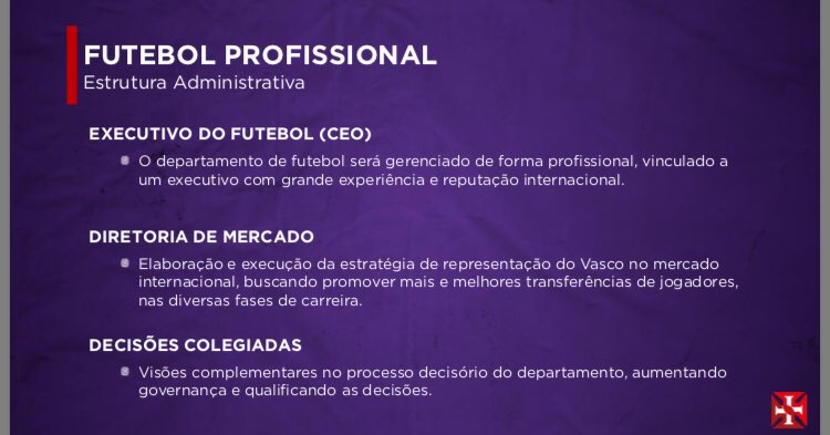Essa será a estrutura do Futebol na gestão de Jorge Salgado, conforme divulgado no site da Mais Vasco.