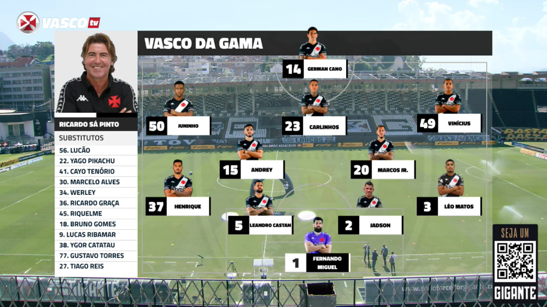 15:02 - Confira a escalação do Vasco; Benítez não joga e Juninho e Carlinhos são titulares