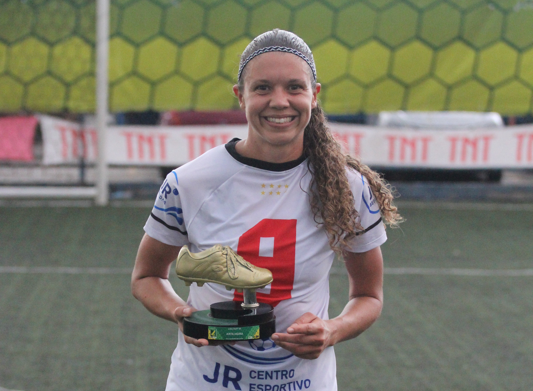Futebol 7 Feminino: Artilheira da Liga Fut7 com 10 gols, Tati recebeu a chuteira de ouro