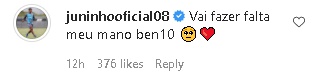Jogadores do Vasco comentaram no post publicado por Benítez no Instagram sobre sua despedida do clube.