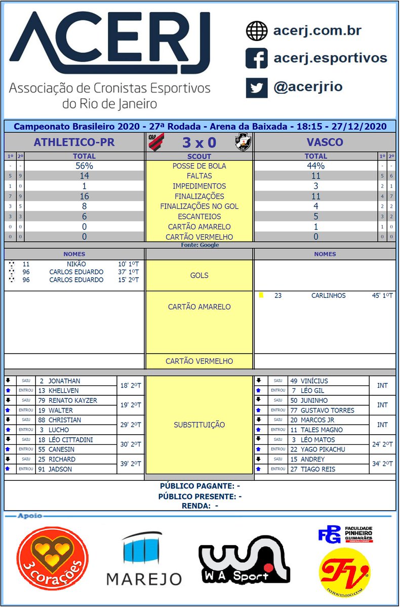Scout Final de Athletico-PR e Vasco pela 27ª Rodada do Campeonato Brasileiro 2020 na Arena da Baixada (Fonte: Google) #Brasileirao2020 #acerjinforma #CAPxVAS
