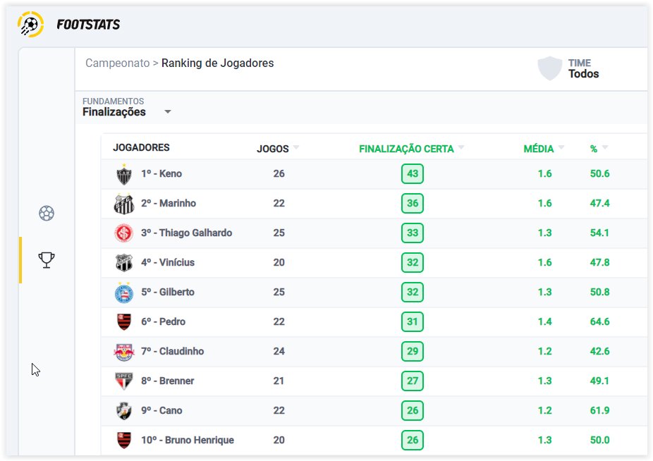 Os 10 jogadores com mais chutes certos no BR A