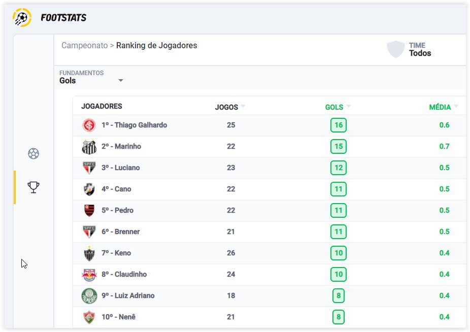 Os 10 jogadores com mais gols no BR A