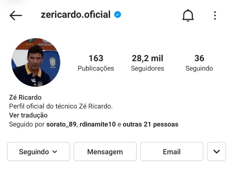 Os vascaínos, como de costume, chegaram a conta do técnico Zé Ricardo no Instagram.