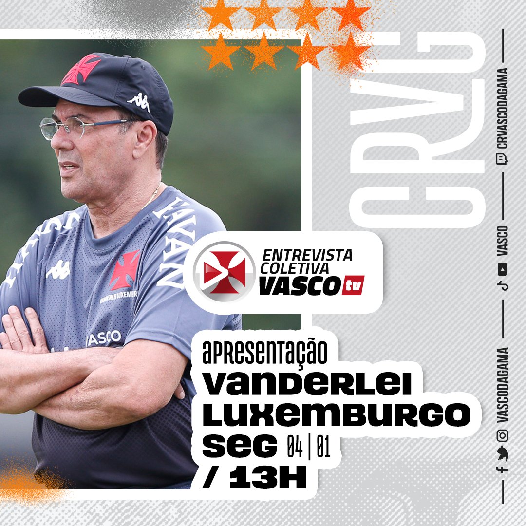 Apresentação Vanderlei Luxemburgo 13h no CT do Almirante, com transmissão da VascoTV.