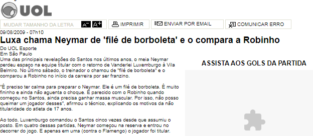 Assim como fez com Gabriel Pec, Luxemburgo também chamou Neymar de 'filé de borboleta'
