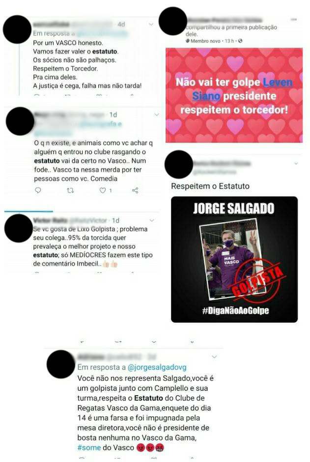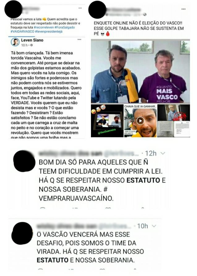 O primeiro dos três recursos neste 2021 sobre a eleição para presidente do Vasco, feito na última quinta-feira pelo partido Solidariedade, ao Supremo Tribunal Federal (STF), para impedir a posse de Jorge Salgado e, consequentemente, que Leven Siano seja proclamado presidente, contou com diversas provas anexadas aos autos, as quais o Esporte News Mundo teve acesso a detalhes. Em uma destas provas, 22 páginas com prints de mensagens no Twitter, Facebook, YouTube, Instagram e WhatsApp, classificadas como "reação e indignação de sócios e torcedores contra a intervenção estatal" no pleito do Cruz-Maltino – confira partes destes prints ao fim desta reportagem.