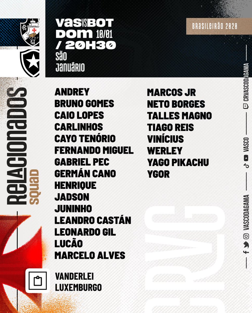 10/01/21 - Confira desfalques e pendurados de Vasco e Botafogo