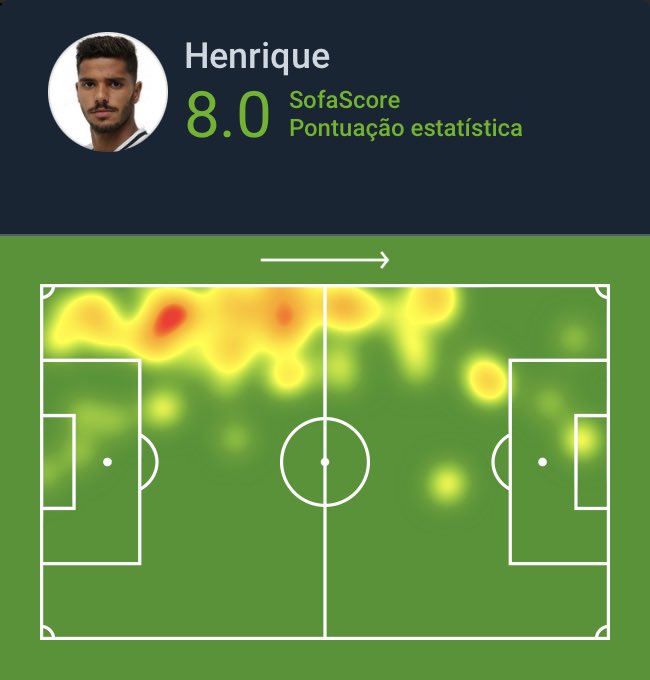 Contra o Botafogo, Henrique teve a sua maior nota entre 109 partidas registradas no SofaScore (8.0)!