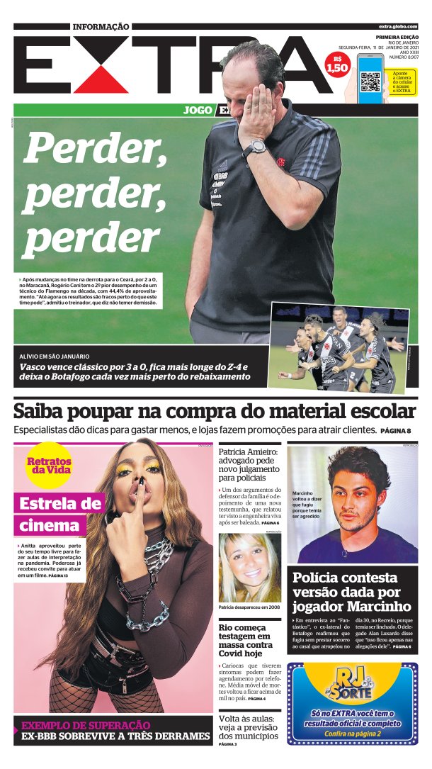 Veja como as capas dos jornais destacaram a vitória do Vasco sobre o Botafogo