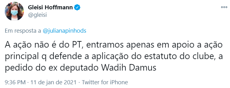 Fonte: Twitter da deputada federal Gleisi Hoffmann