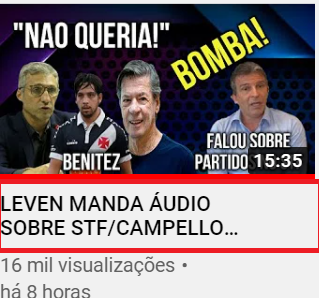 Ontem o Canal 'Vascaíno do Cerrado' fez um vídeo com a repercussão da entrevista do Campello ao Atenção Vascaíno, e colocou tbm a sonora do Leven Siano, negando qualquer participação, ou envolvimento nas ações do PT e Solidariedade
